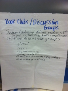 During the session, I challenged attendees to brainstorm in teams how they could facilitate leaderhsip/learning with methods they were provided. Here are a few photos from flip charts they used to record their discussions: